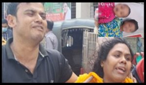 গাজীপুরে বিষ ক্রিয়ার নিহত শিশু আশামনি ও তার ছোট বোন আলিফা আক্তারের মা-বাবার আহাজারি (ইনসেটে আশামনি ও আলিফার মরদেহ)। ছবি : এনটিভি