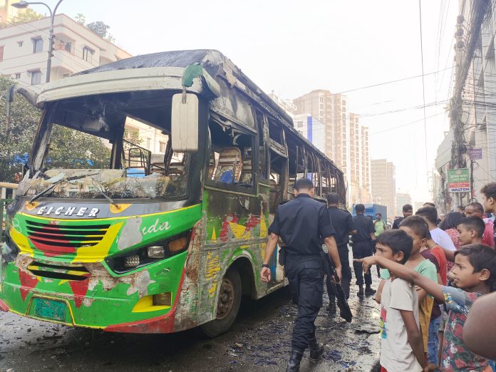 বাড্ডা শাহাদাতপুর রাইদা বাসে আগুন