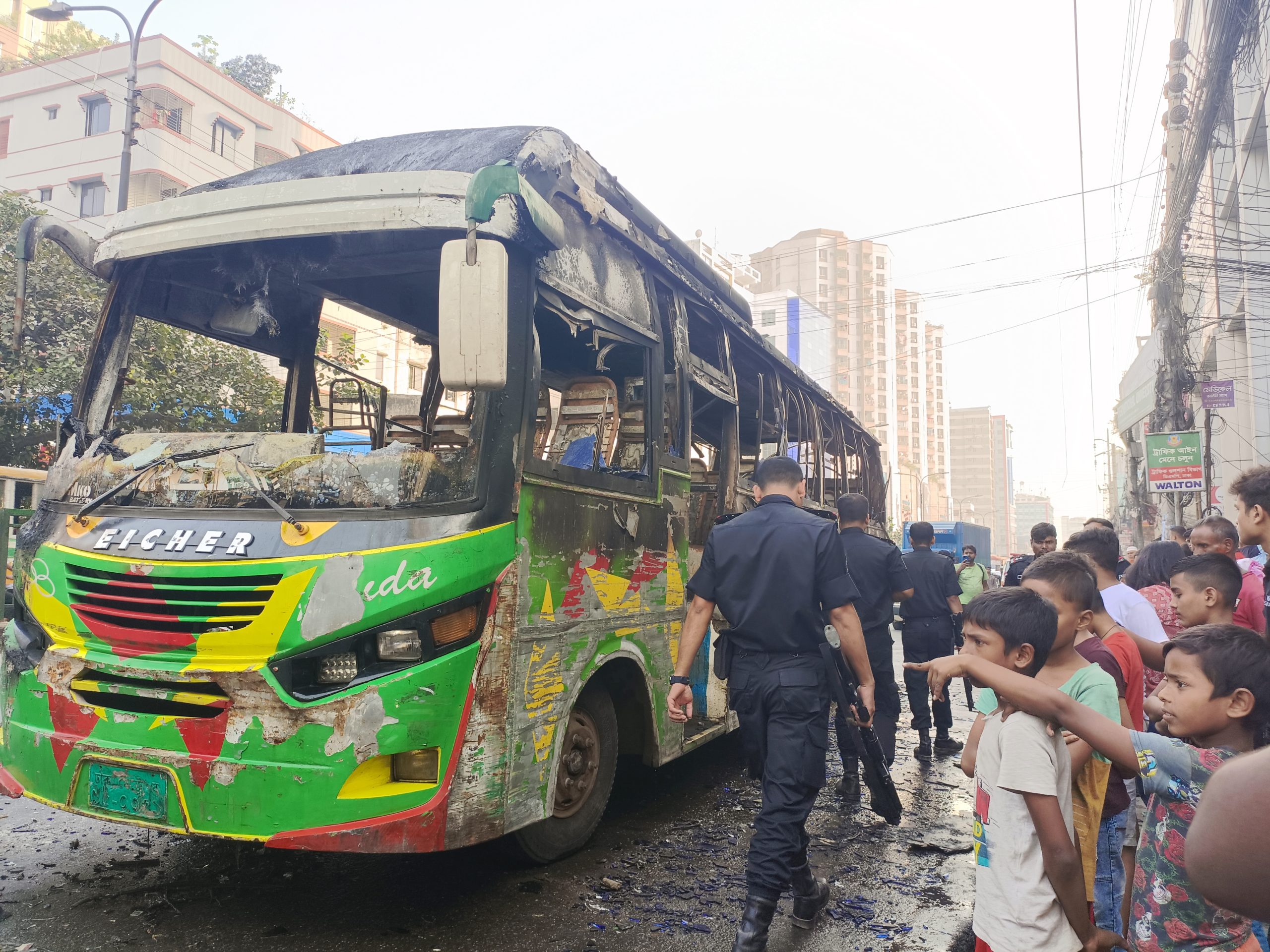 জুরান পোস্তগোলা থেকে উত্তরা যাবার পথে বাড্ডা শাহাদতপুর রাইদা বাস ভাঙচুর ও আগুন দুপুর ২ টা ২৮ মিনিটে আগুন লং টাইম থাকার পর ফায়ার সার্ভিসের লোক এসে আগুন নিয়ন্ত্রণে এনেছে